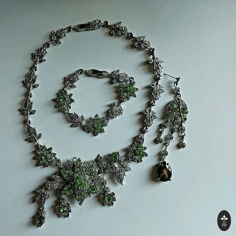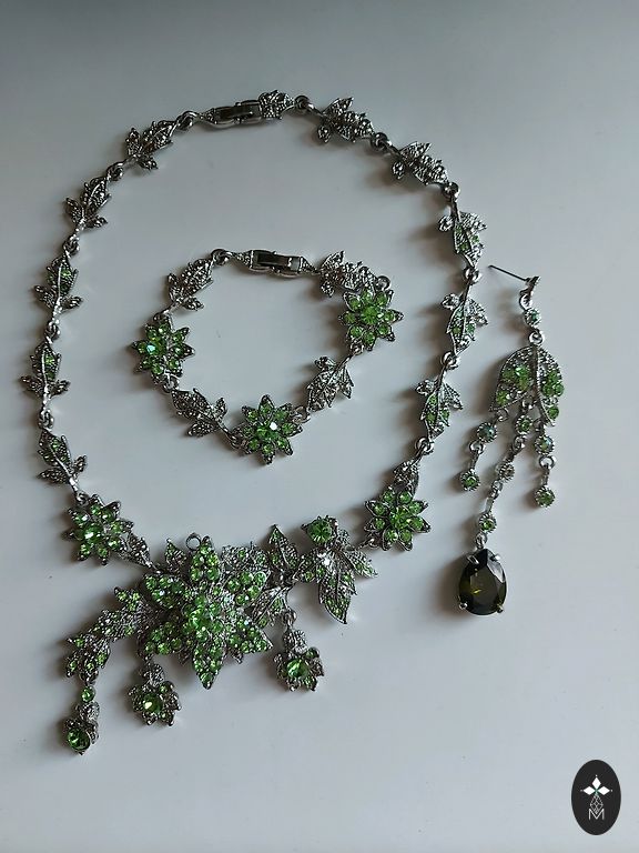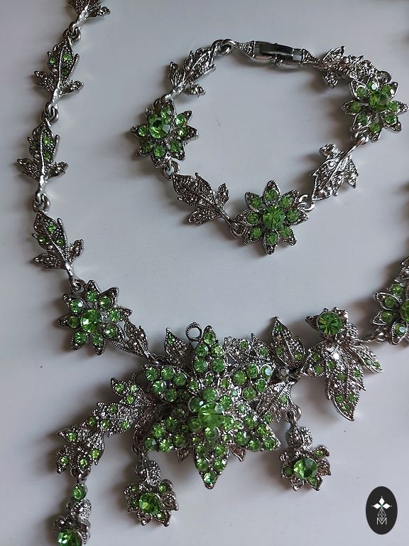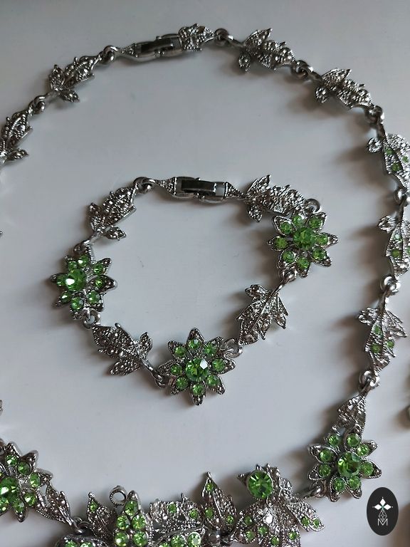 Labai romantiškas ir moteriškas vintažinis kaklo papuošalas iš 2000 metų, tvirta kokybiško metalo pagrindas sidabro spalvos, emaliuoti gėlytės ir cirkoniai, sunkokas, ilgis reguliuojamas.