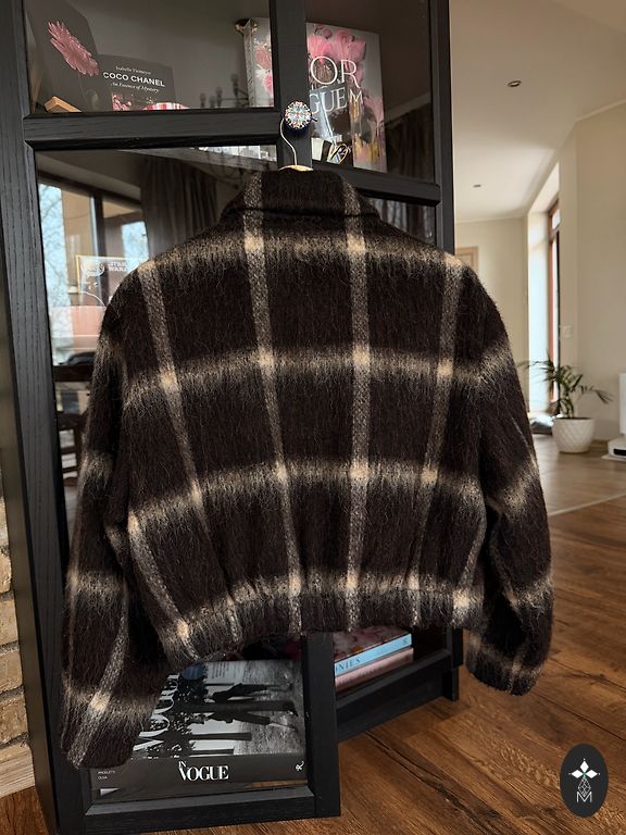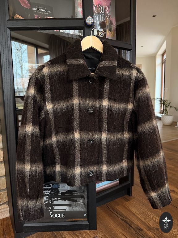 Worn a few times, perfect condition stylish jacket with a contrasting collar, modern style. Size S. Oversize, can fit M well. Material: 100% cotton, 100% polyester insulation. High quality, great for cooler weather. Quilted cotton jacket with a contrasting collar and long sleeves. Elastic inner cuffs. Side pockets at seams and chest pockets with flaps. Zipper and button closure under the flap. Chest 59.5 cm, length 73, sleeve length 57.5
