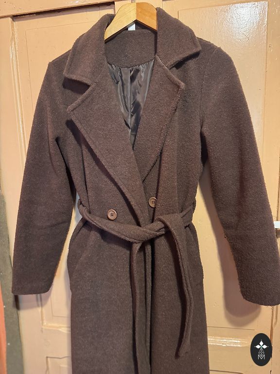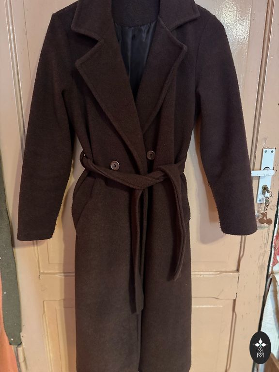 Labai mažai dėvėtas. Idealios būklės. Dydis yra onesize. Esu M, bet paltas tiks tiek S, tiek L dydžiams, nes nėra sagų, tik diržas. Pagaminta Rusijos prabangos prekės ženklu 8fridays. Šiltintas. Tinka ir žiemai. Ilgis yra 120 cm. Paskutinė nuotrauka yra būtent šis modelis.