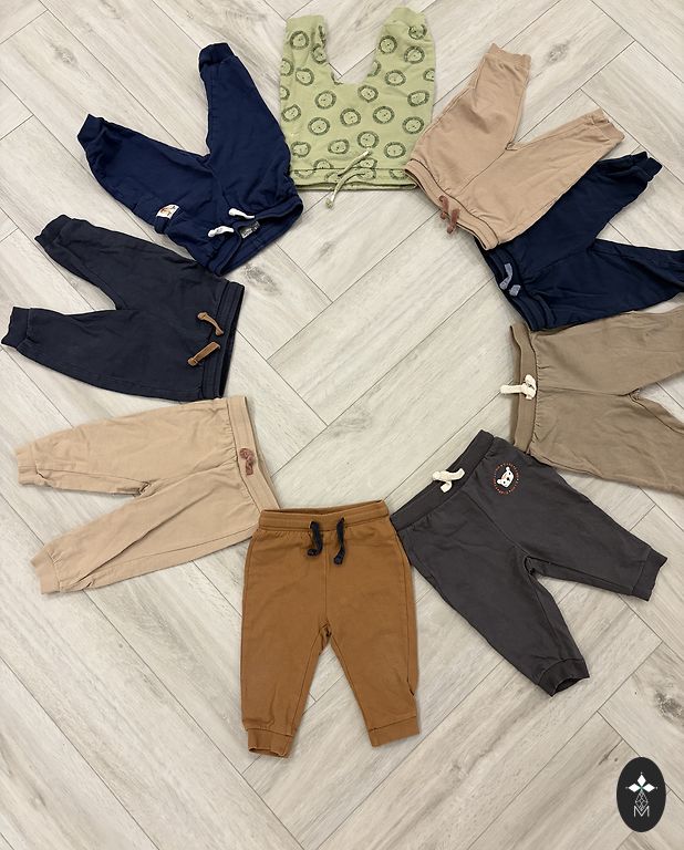 98 ir 104 dydžio kelnės. Pirmos du iš Lindex, likusie iš kitų prekės ženklų. Nėra skylių ir dėmių, tik nuo skalbimo spalva šiek tiek išblukusi. Siuntimas įskaičiuotas į kainą.