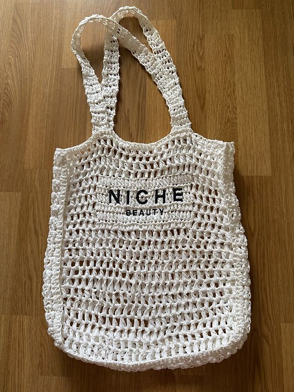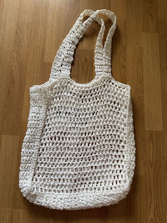 Lengvas ir talpus krepšys 29cmx28cm, gylis 12cm. Vienas vidinė dalis, viena išorinė kišenė. Yra ilgas reguliuojamas diržas. Krepšio priekyje yra įdėklai iš dirbtinių šiaudų. Siuntimas nėra įtrauktas į kainą.