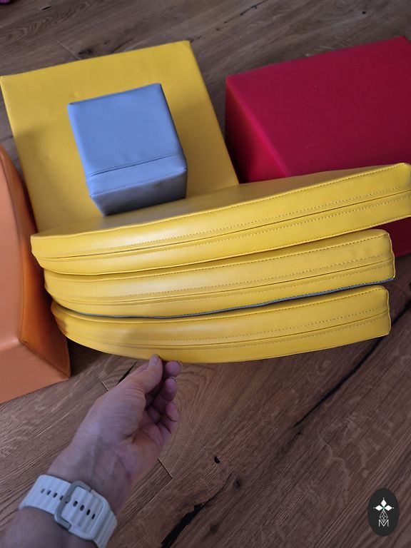 Комплект Iglu Soft Play Corner Climber. В комплекте также есть крепления. Состояние очень хорошее, дефектов нет. Единственное, к креплениям немного прилипли пушинки, но это не влияет на их функциональность. 📍 Местоположение: Озолниеки