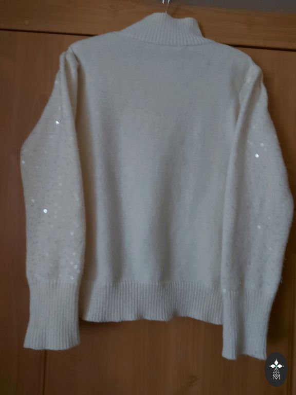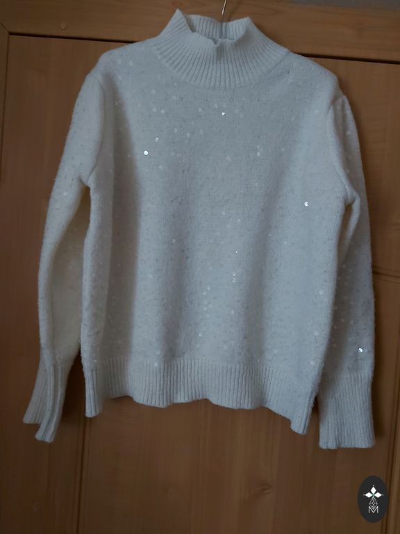 Ilgis 58 cm, tarp pažastų 30 cm, rankovių ilgis 38 cm. Suknelė labai geros būklės. Žr. 4 nuotrauką: du visai maži, nepastebimi dėmeliai. Skalbtas su švelniomis skalbimo priemonėmis.