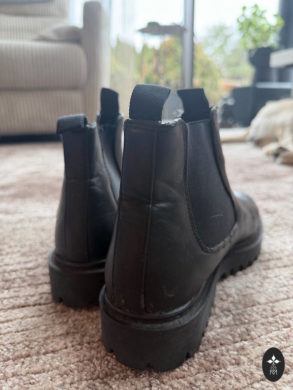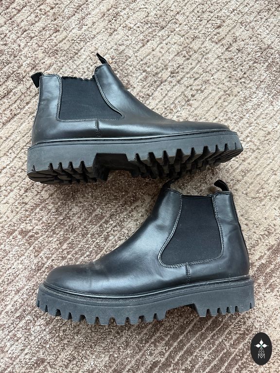 Viduje šiek tiek izoliacijos. Vieno bato oda nusitrynusi, bet tai galima užtepti batų tepalu. Kokybiški, šilti.