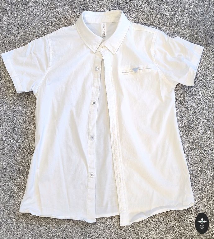 Used, after one child. Size 128. There are reflective elements on the sleeves, hood, and back of the jacket. The hood is removable.