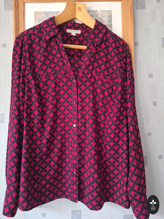 Skaista krāsa. S-M izmēram. Noteikti neatstās vienaldzīgus, jo tā ir efektīga, pamanāma. Bildējot ārā ir labāk redzamas blūžu krāsas. Piedurknes manžetes ir uzlokāmas.