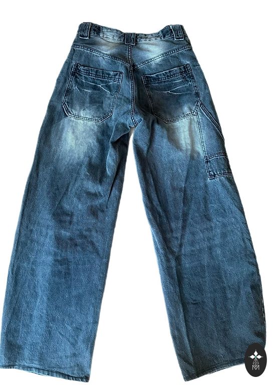 Женские джинсы размера 42 (XL). Обхват талии в нерастянутом виде - 44 x 2 см, в бедрах в нерастянутом виде - 53 x 2 см. Длина брюк - 109 см, длина штанины - 80 см.