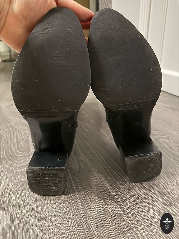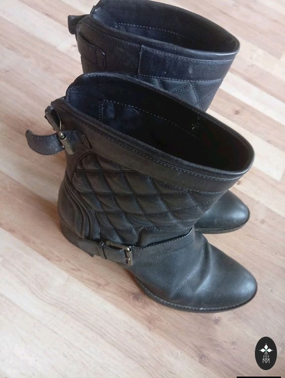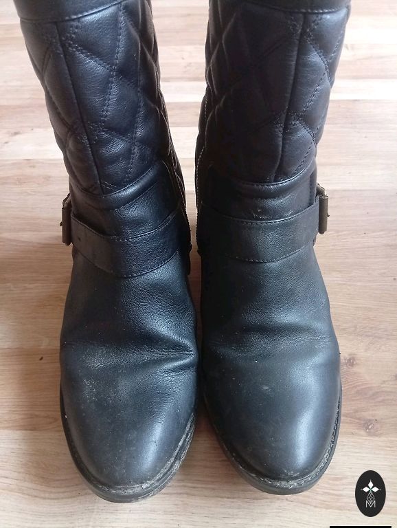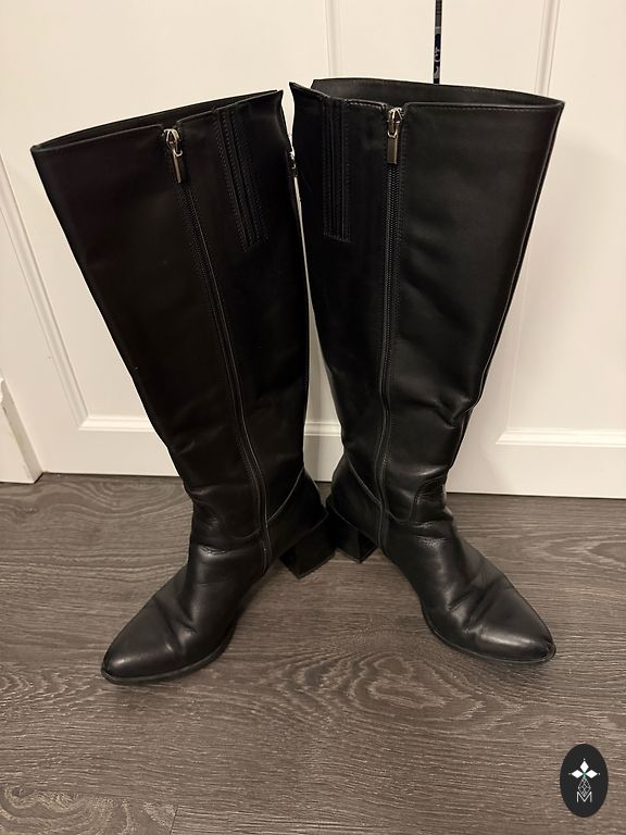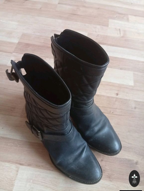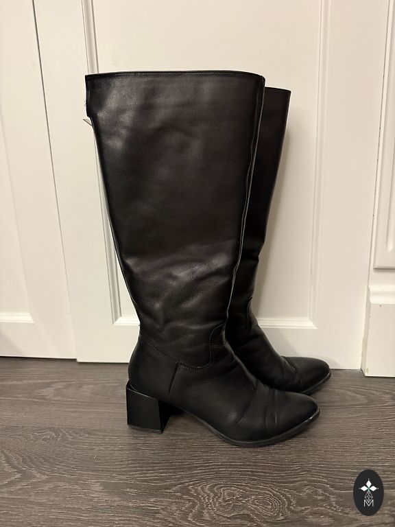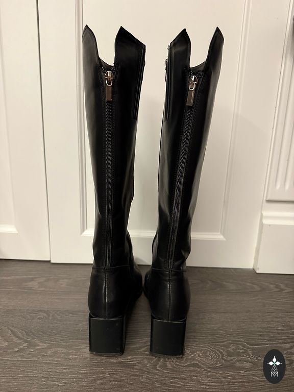 Bought right here on Andele, indicated size 36, but it's larger, insole 24cm. I have size 36, but it's too big. I'd say it's even size 37. Soft, quality leather. Over the knee, beautiful and, I would say, a bit coquettish look. Heel 4cm. There are signs of wear on the heel, but if needed, it can be repaired. 🌹Plus shipping 2€ 🌹Thank you for checking out my shop! 🌹☀️Buying 2 items, I offer free parcel delivery (dpd)🤗