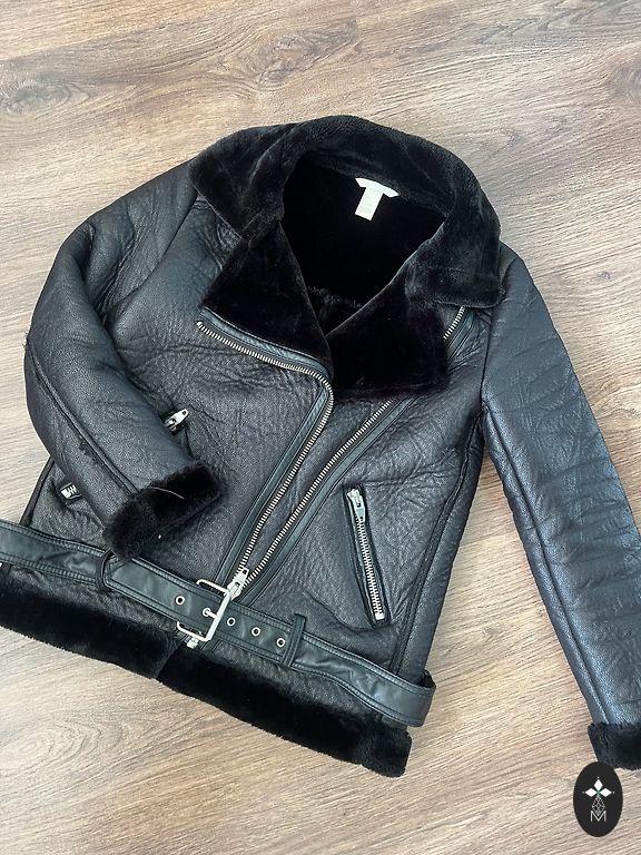 Кожаная куртка типа oversize, размер xs. Подойдет на xs/s. Единственный дефект виден на последнем фото (потертость на шее). Надев, это не видно, так как находится внутри воротника. Остальное все в отличном состоянии, никаких потертостей. Отправлю фото в личку, где можно лучше увидеть дефект.