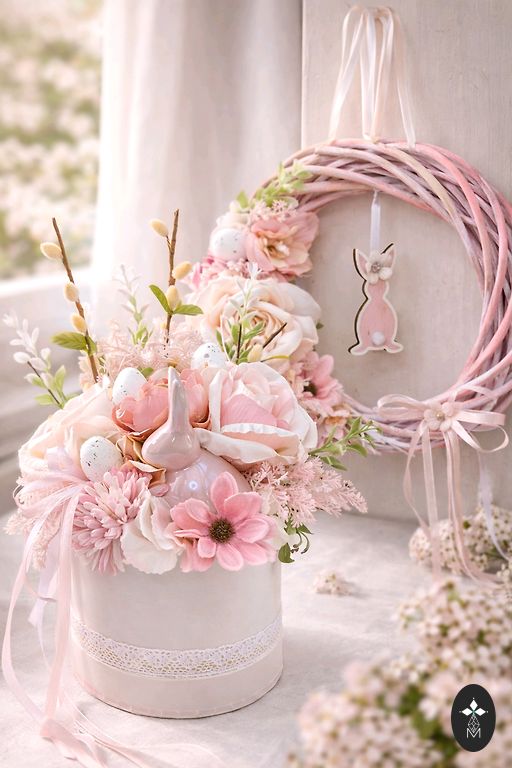 Velykinių kiaušinių krepšelis, dekoracija su Velykų zuikučiu, keturi dekoratyviniai Velykų kiaušiniai gyvūnų formos ir šeši kūrybiniai rinkiniai: