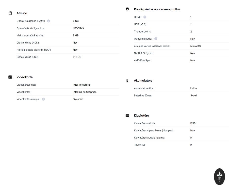 • Atmintis: 256 GB SSD