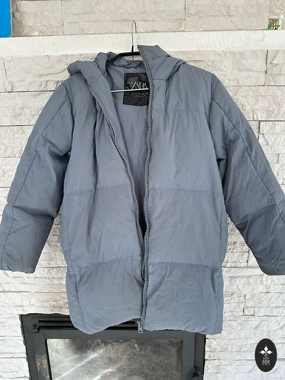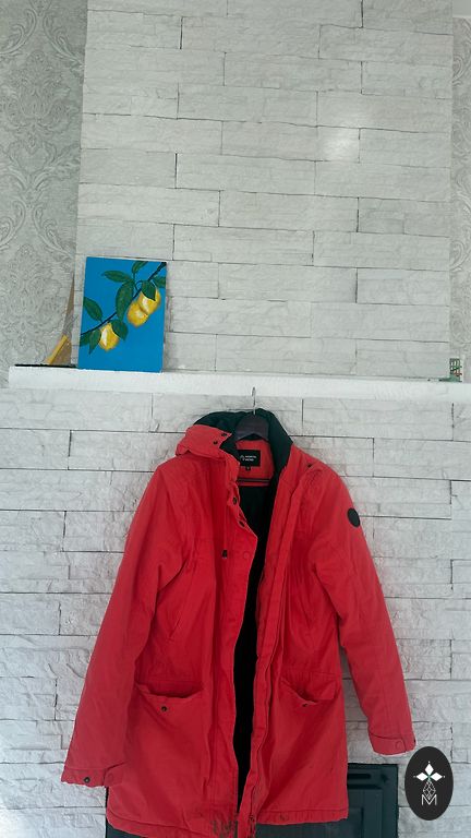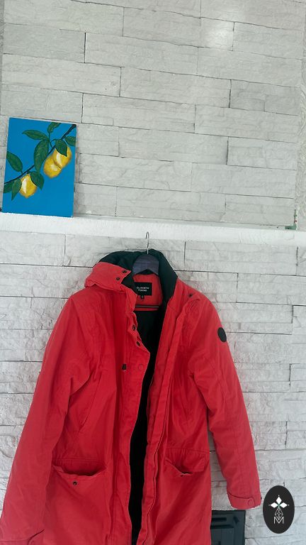 Lengvas, šiltas pavasarinės striukės, M/L dydis. Apykaklės dalį galima nešioti atlenktą arba užsegtą. Vienintelis trūkumas matomas nuotraukoje - įbrėžimas ant audinio prie užsegimo, tačiau užsivilkus kraštas yra kitoje pusėje ir jo nematyti.
