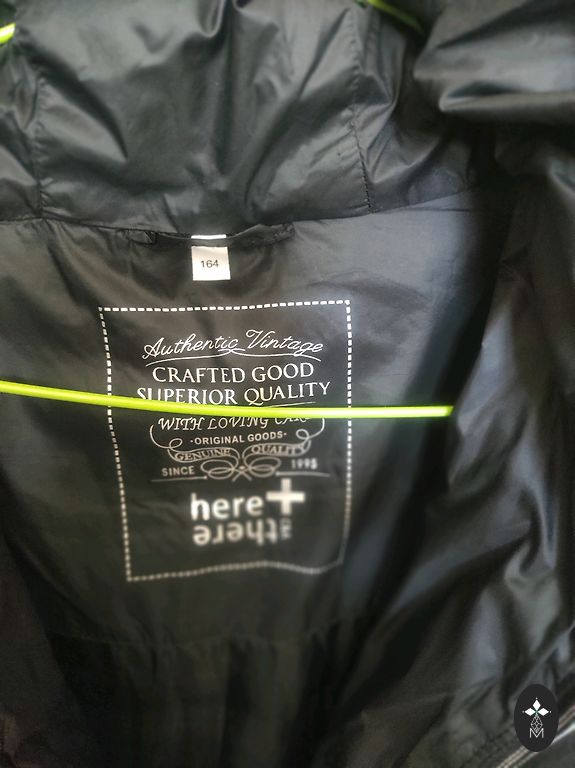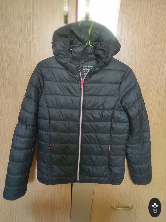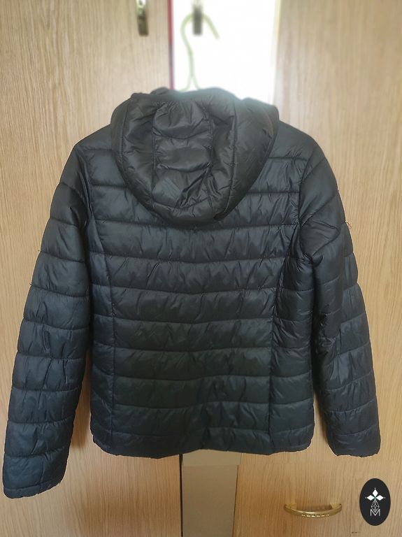 Closure – zipper, high collar, inner cuffs for wind protection, two side pockets with zippers, two upper pockets, inner pocket, hood.