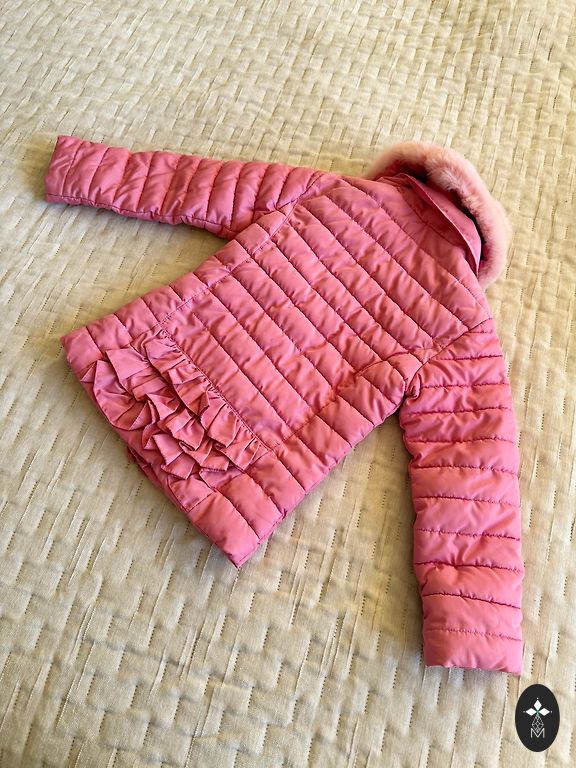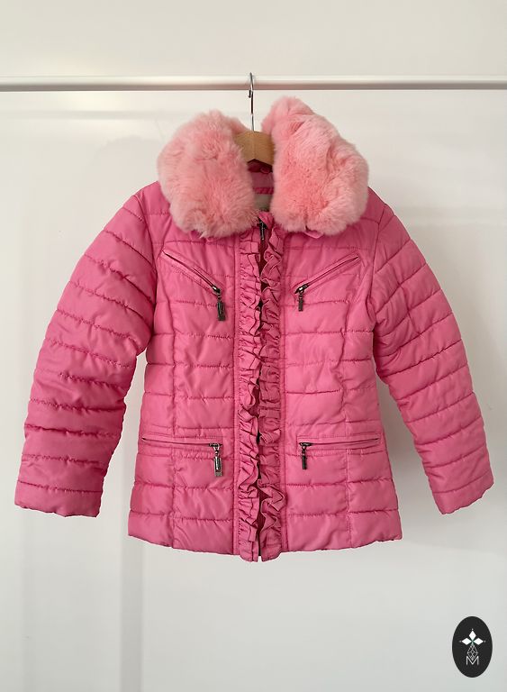 Worn twice, became small in spring. Labeled 110, but also perfect for size 116. Very bright, beautiful. Wind and moisture resistant.