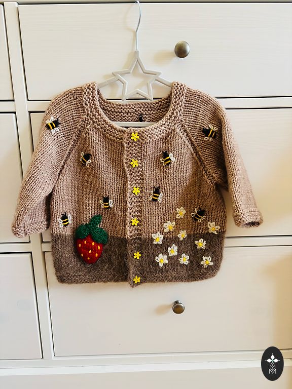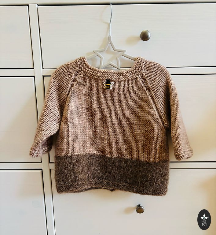 🐝 megztinis pažastų plotis 37/38 cm, megztinio ilgis 40 cm.