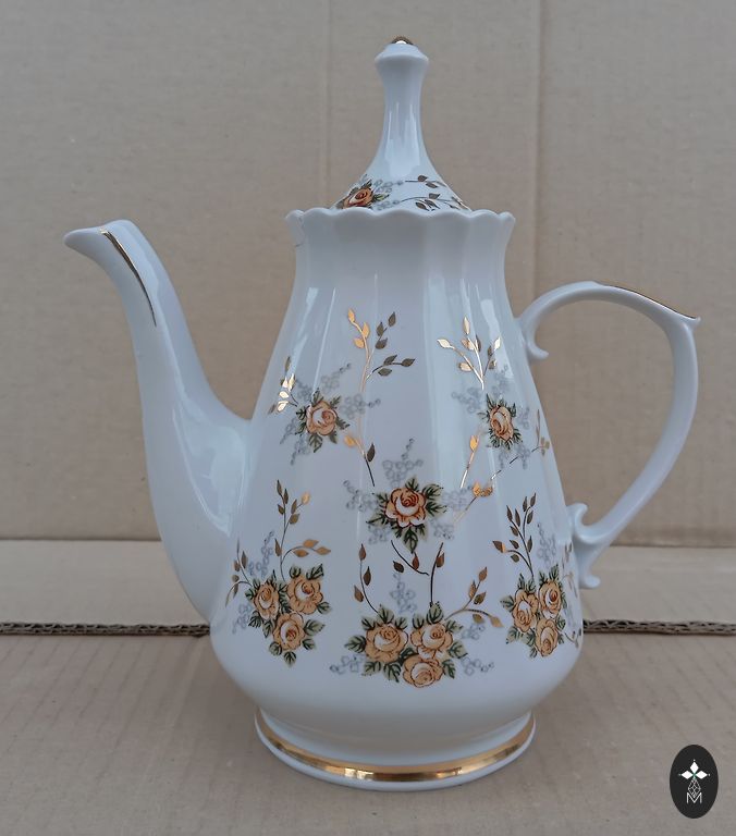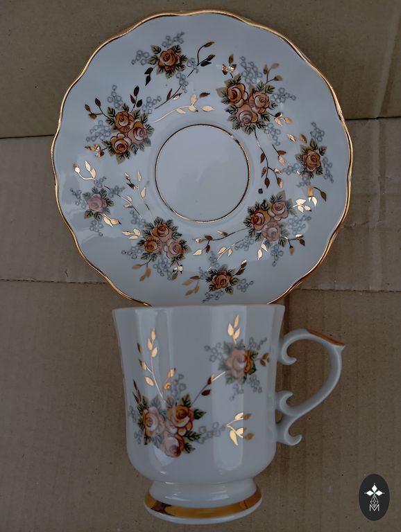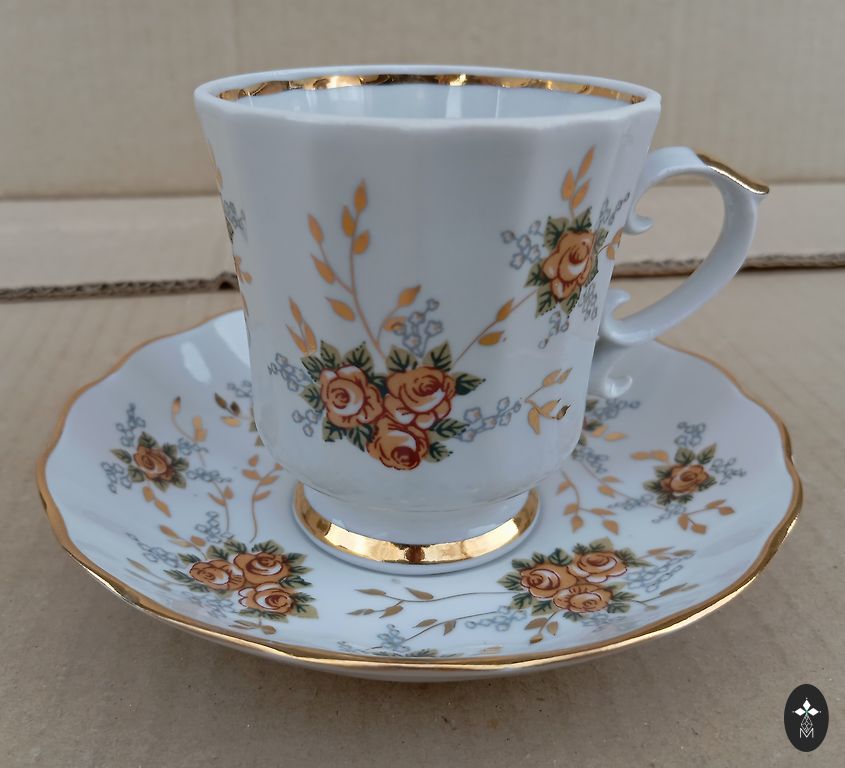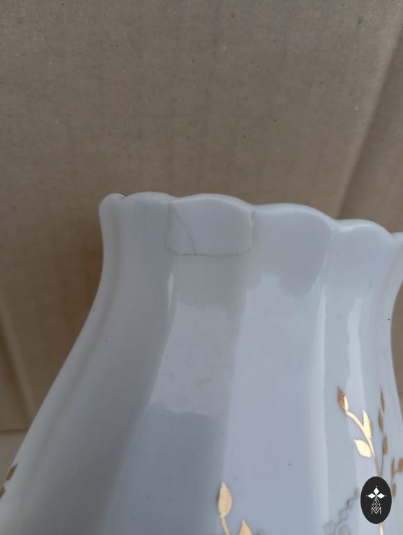 Senovinė RPR porceliano vazelė 1940/1957 m. Aukštis 8,5 cm, plotis 7 cm. Nepaisant vazelės amžiaus, auksas yra vietoje, gali būti nedideli spalvos nelygumai, bet pramoniniai. Nėra įtrūkimų ar įskilimų.
