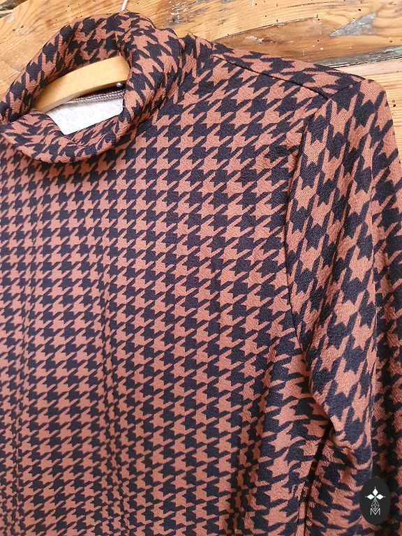 Topp - pikendatud, saab kanda koos retuusidega, veidi elastne polüesterkangas. Vaja on mõned niidid sisse tõmmata ja küljeõmblus oli veidi lahti, mis on kokku õmmeldud.