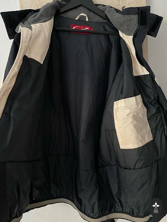 Tamsiai mėlynas bombonešis su šoninėmis kišenėmis. Viduje yra viena kišenė.