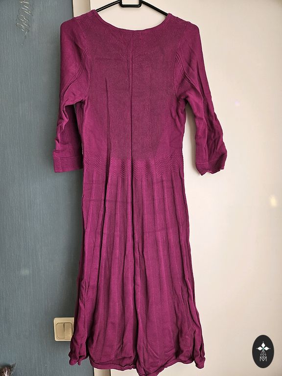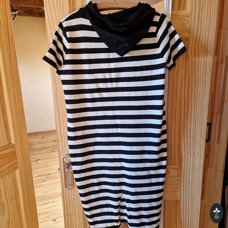 Eleganta vasaras kleita, elpojošs audums, viegli saburzīta auduma struktūra (var arī negludināt), ar dziļām kabatām, garums 106 cm, M/L izmērs (EUR 12.izmērs), izmēram atbilst, manekena izmērs 95-77-103 cm. Uzvilku vienu reizi, īsti nav mans modelis.