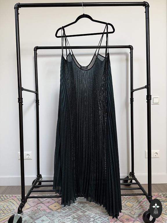 Black maxi dress, slightly used. A small defect - a tiny hole at the bottom of the dress skirt, which can be discreetly sewn. Suitable for tall women. Material: Polyester + cotton, top made of cotton lace, transparent. Skirt - polyester.