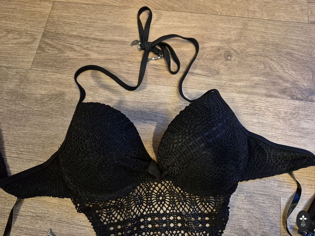 Moteriškas maudymosi kostiumėlis su paminkštinimu.