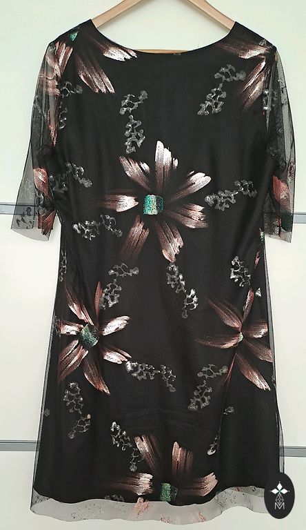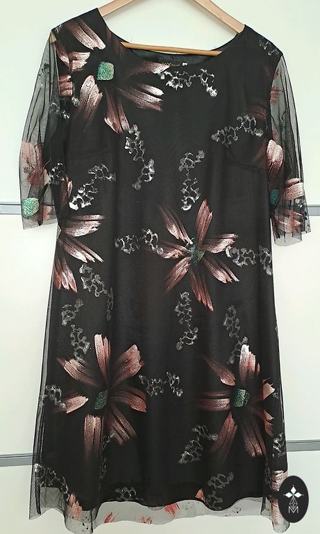 Lengva Mohito marškinėlių suknelė su sagomis ir diržu. Rankovės plonos ir permatomos, pačiai suknelei yra apatiniai sijonai.