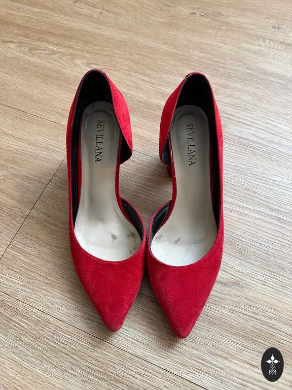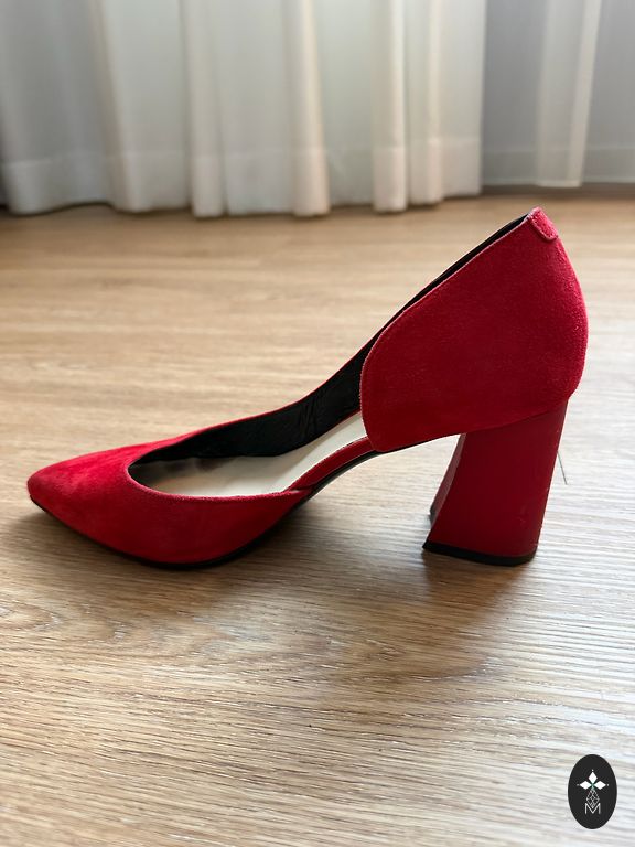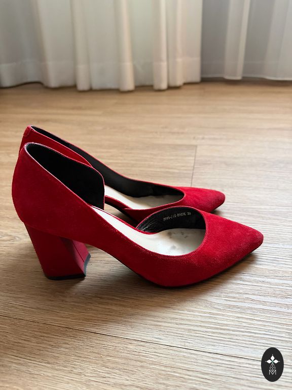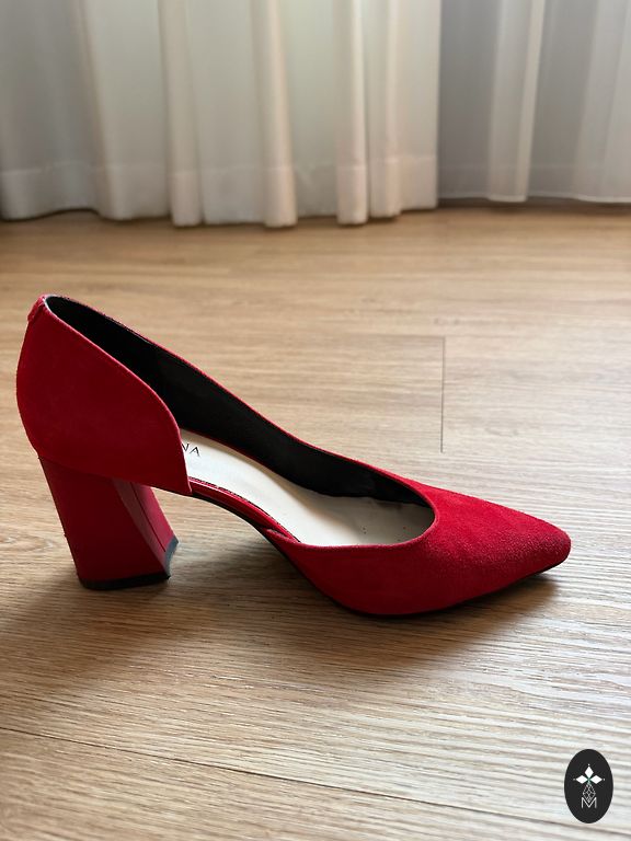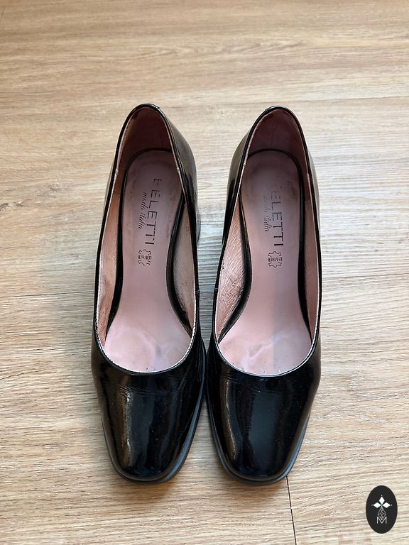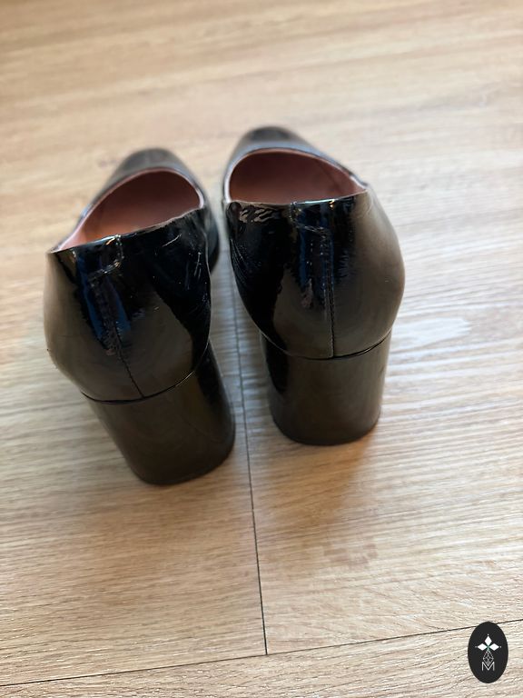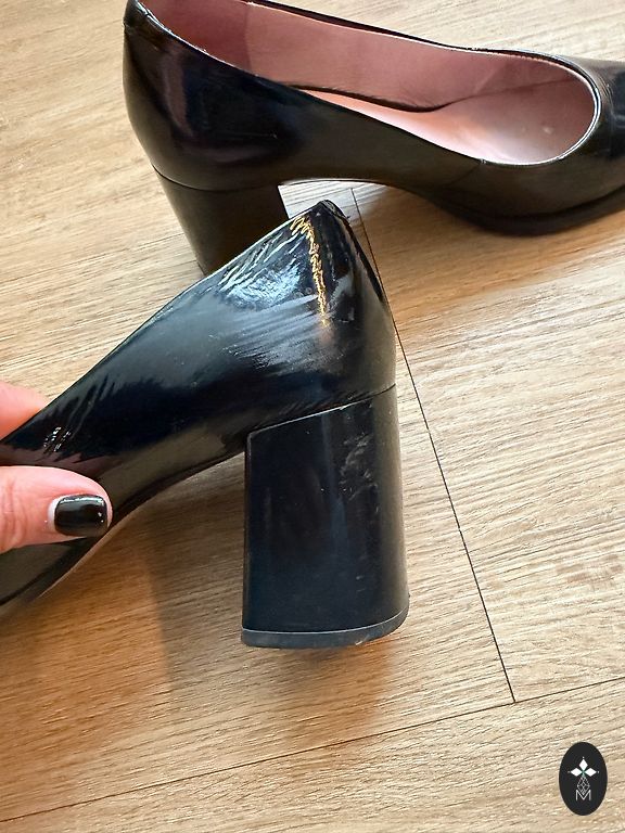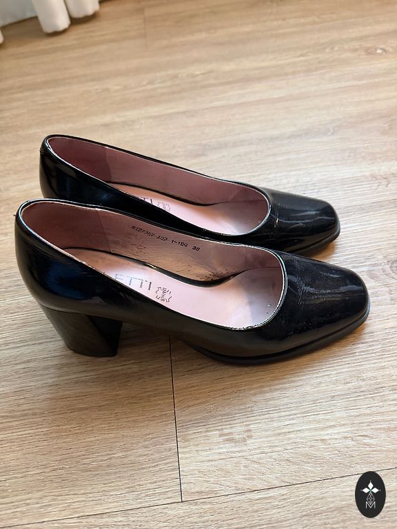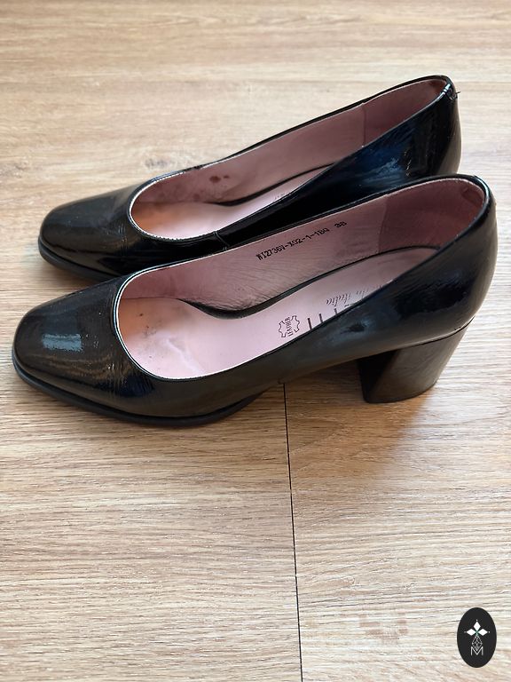 Defektai matomi nuotraukoje, nutrintas nosis ir kulniukai, avėti kelis kartus. Stabilus 38 dydis siaurai kojai. Man kulnas vis dėlto per aukštas.