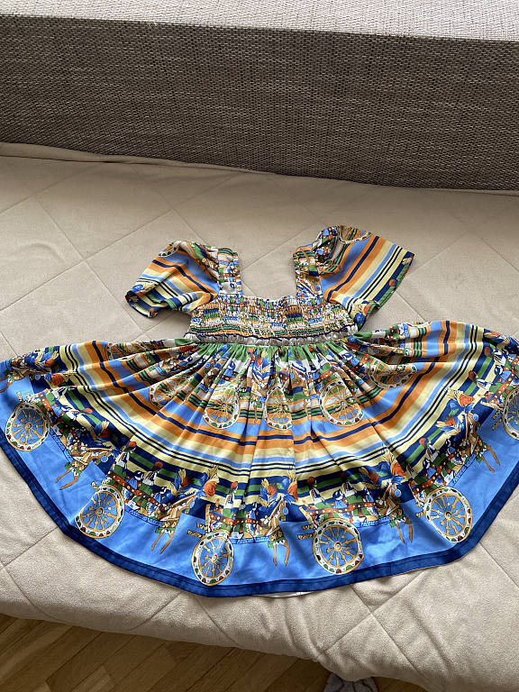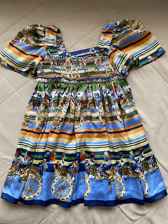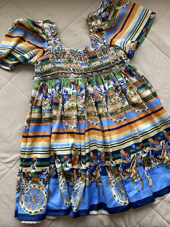 Adelės rankų darbo medvilninė trikotažinė suknelė 116. Dydis (tiks dėvima gerokai ilgiau) dangaus mėlynos spalvos. Spalva atitinka pirmoje nuotraukoje. Naudota kaip sceninis kostiumas. Kartu pridėsiu nuotraukoje matomą nėrinių kaklo apykaklę, todėl suknelė tampa iškilminga.