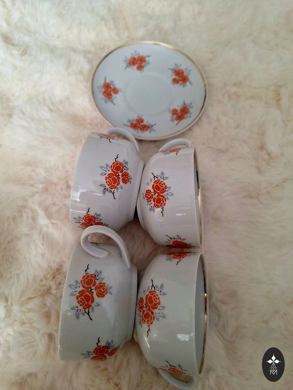 Винтажный набор из 8 глазурованных терракотовых чашек объемом 180 мл
