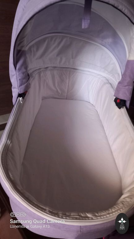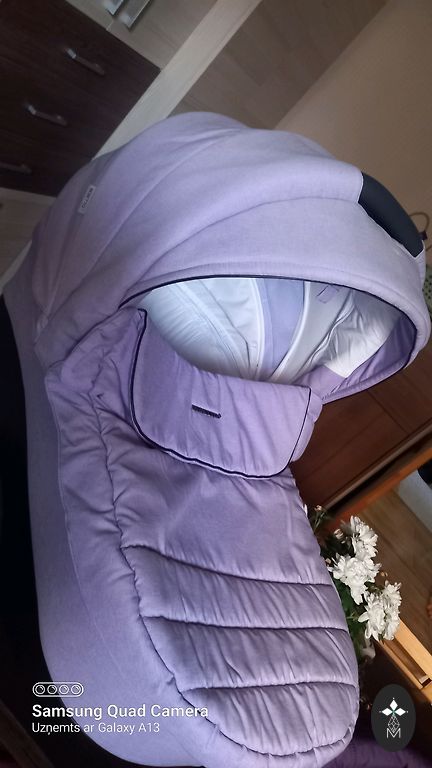 - liels atverams jumtiņš un kāju pārsegs (ziemā varēja kārtīgi aiztaisīt visu, lai mazajam nepūš un nav auksti)