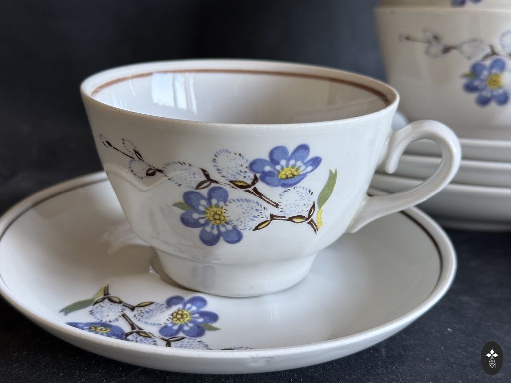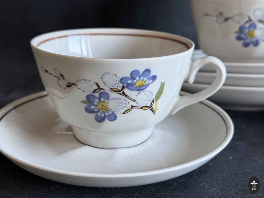 Visi veseli. Baltajām klāt nāk 2, zilajām 3 un ābeļziediem- papildus 1 šķīvītis.