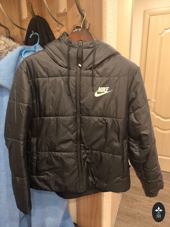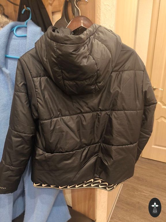 Длина куртки спереди - 63 см, сзади - 74 см, длина рукавов - 63 см, ширина плеч - 42 см, обхват груди - 104 см.