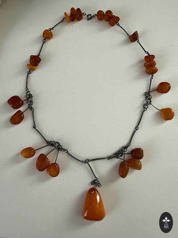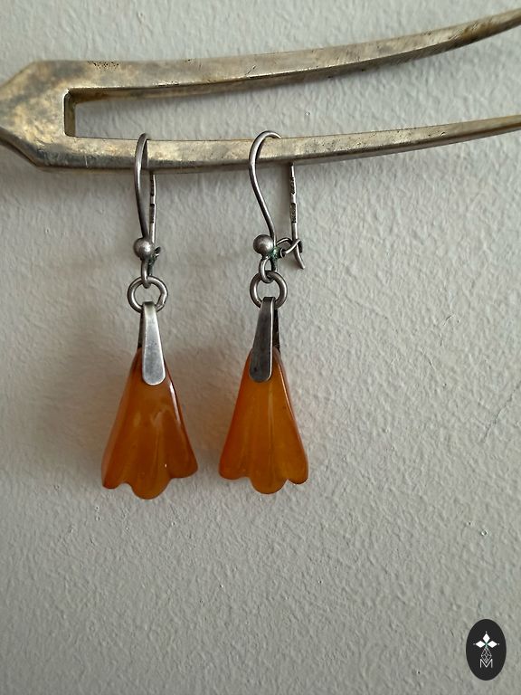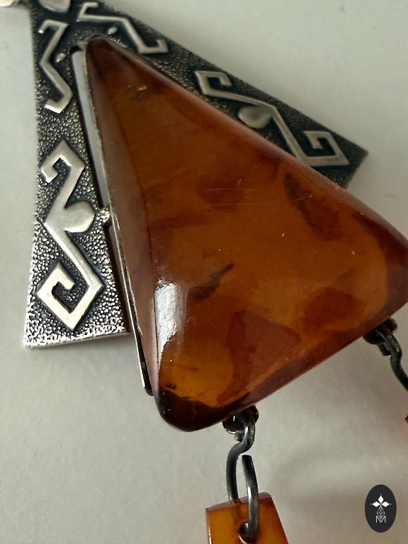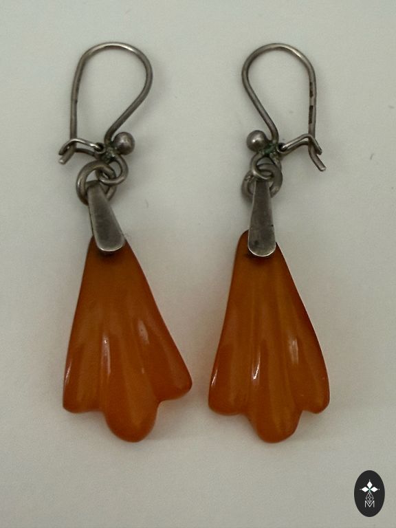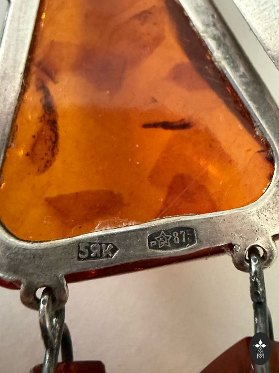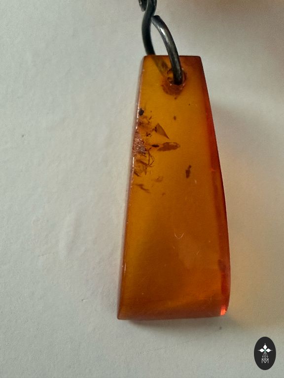 Редкие серьги с черным янтарем