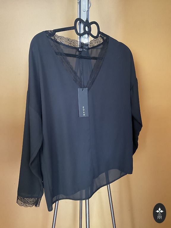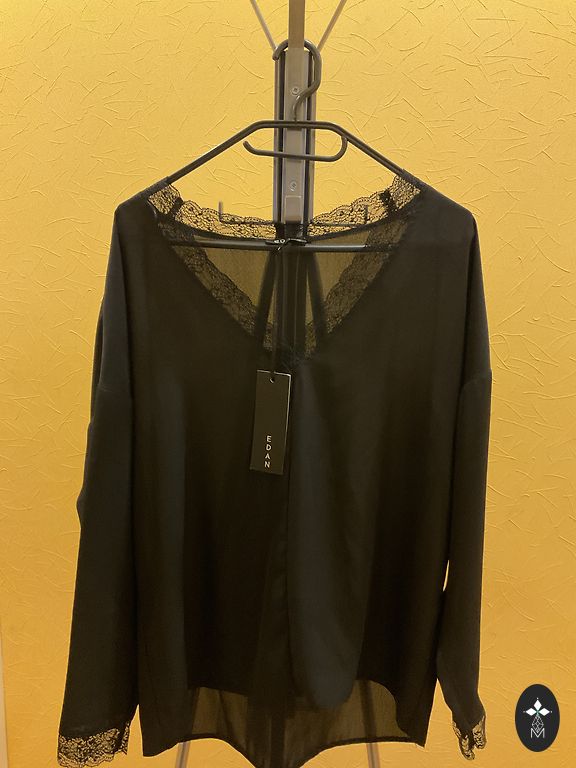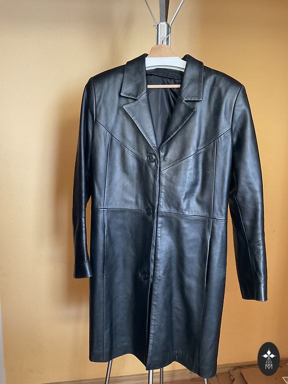 New black wool jacket/coat. Composition 90% wool. Excellent quality, very soft fabric. Bought for myself, but the size didn't fit. Measurements (measured horizontally) between armpits 49cmx2; length 82cm; sleeve length 63cm.
