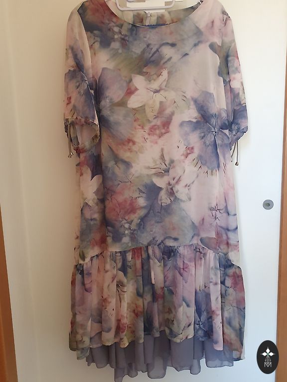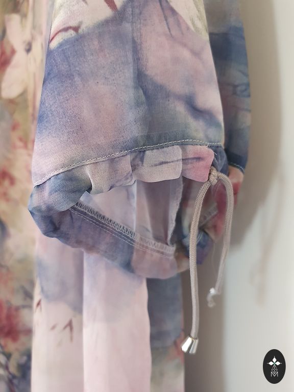 Jeans with an interesting design, very comfortable, loose, like harem pants. High waistband, elastic. No fasteners, as they are easy to put on. Length up to the ankles, depending on height, check measurements. Narrower ends. Material is cotton. Not stretchy, as the style is voluminous and loose. Large, lowered pockets in the front. Regular, classic pockets in the back.