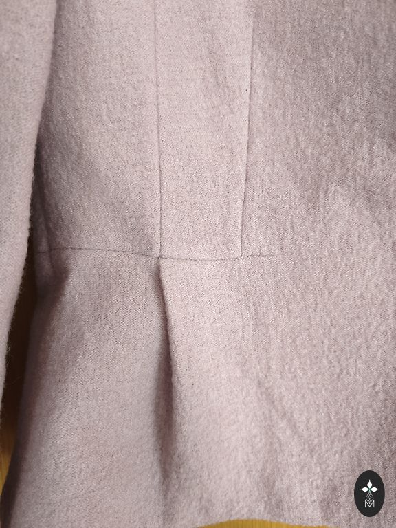Pamats ir no dabīgas vilnas ar polieteri, bet ne bieza. Un virspusē ir mežģīņaudums. Stingri turas pie bāzes auduma, nav tā, ka tikai vīlēs iešūts.