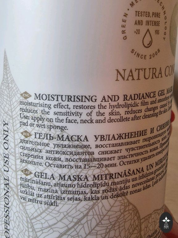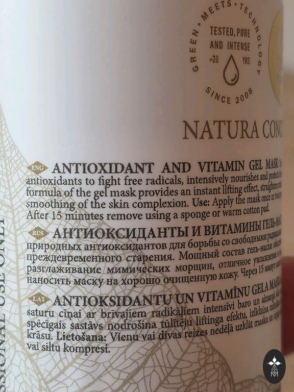 Niisutav, noorendav geelmask, mis on rikkalik looduslike antioksüdantide poolest, rahustab ja taastab naha elastsust, andes sellele värske ja terve välimuse. Ostetud Douglas poest, kuid pole kasutanud ega avanud seda.