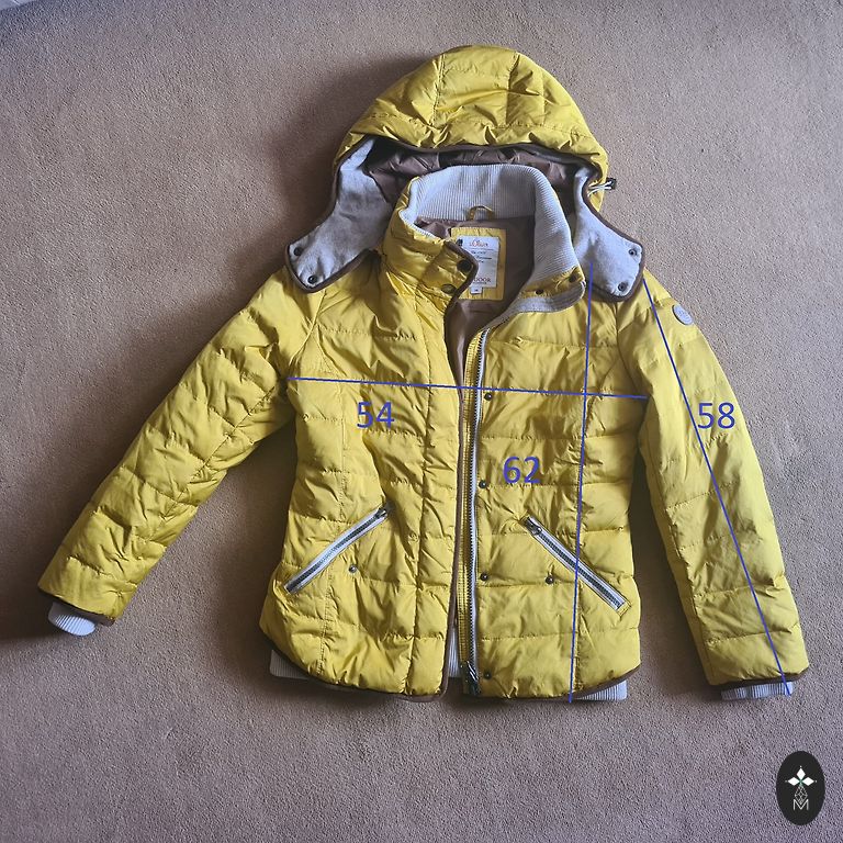 VERO MODA jaka (pavasaris-rudens). Krāsa – oranža. Izmērs – M. Kapuces kažokāda ir noņemama. Izmēri centimetros ir norādīti 3. fotoattēlā. Ir nolietojuma pazīmes, neliels pleķītis aizmugurē (4. fotoattēls). Piegādi apmaksā pircējs.