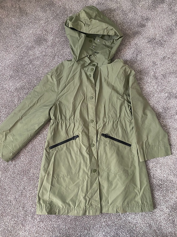 Spring jacket with a hood, pockets