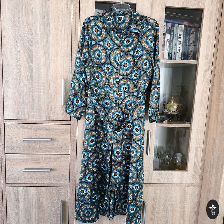 Reizē sievišķīgi eleganta un sportiski brīva un ērta maxi trikotāžas kleita ar apakšmalas volānu un jostu. Lieliski noderēs ikdienā un svētkos, labi kombinējas ar botiņām un laiviņām. Garums 130cm, krūšu apkārtmērs 110cm, viduklis 100cm, pusgarās piedurknes. Audums staipīgs un neburzīgs.