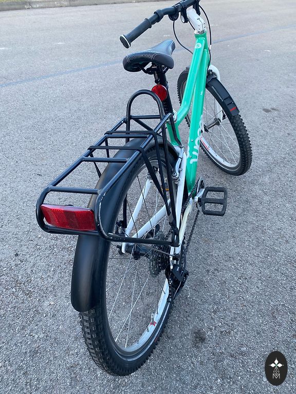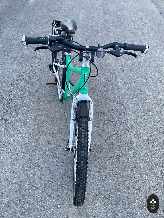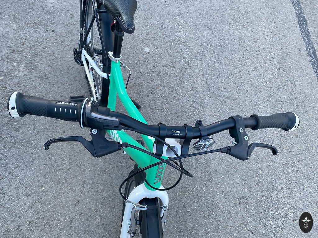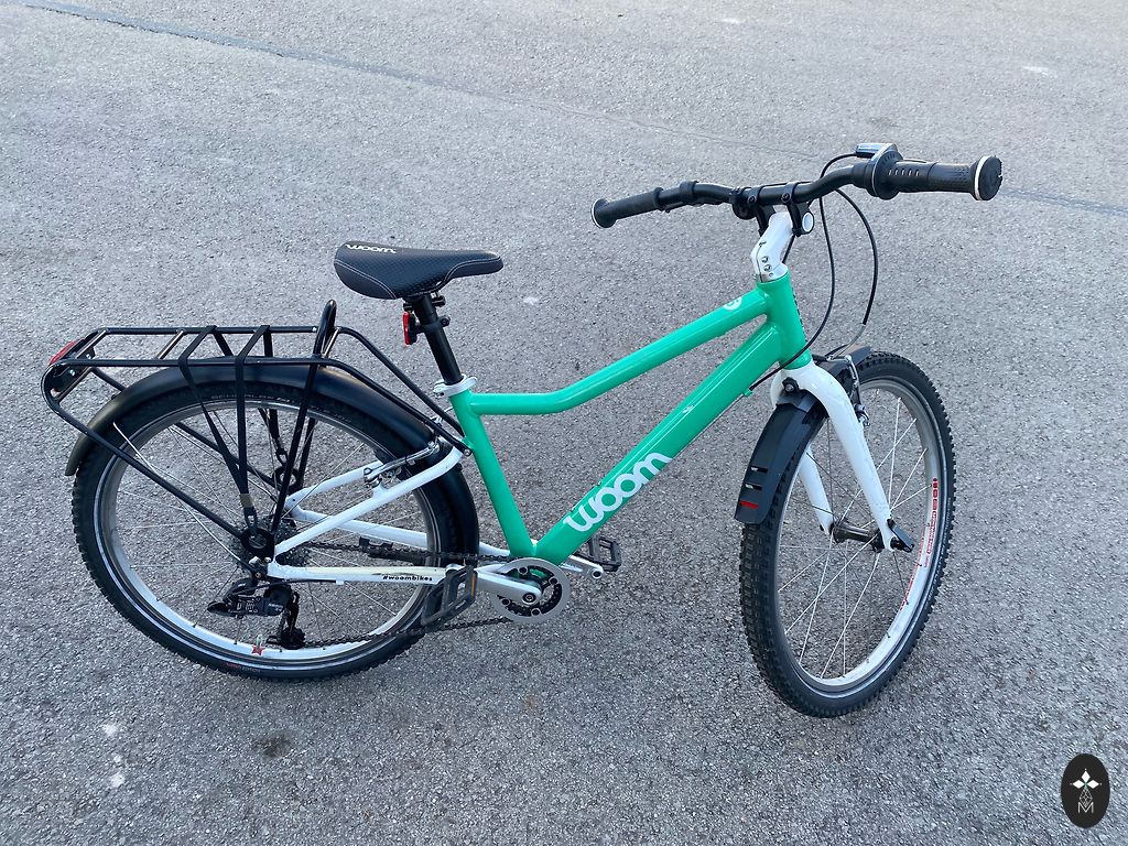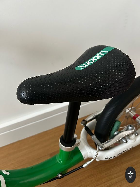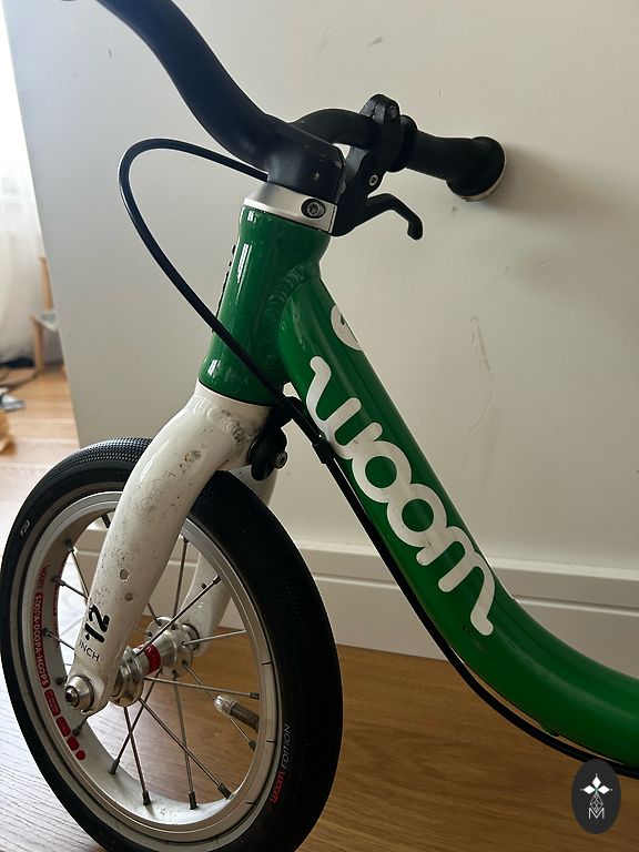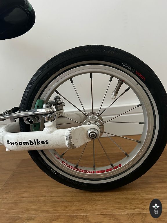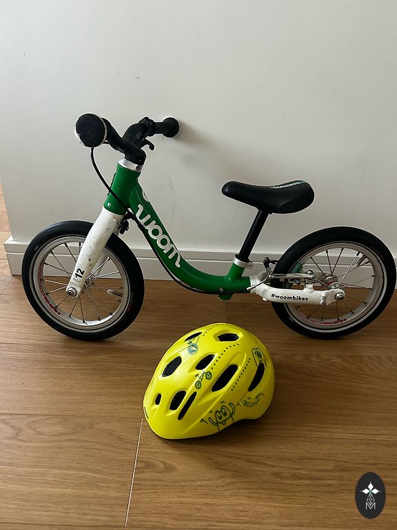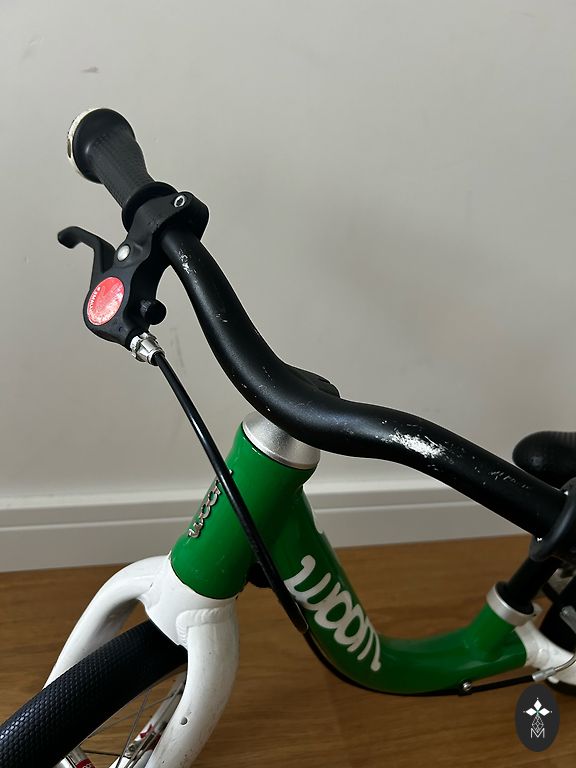 Labai lengvas (5,4 kg) ir patogus Woom 3 dviratis vaikui nuo 4 iki 6 metų. Kai kur yra įbrėžimų, nubrozdinimų, bet vizualiai atrodo gerai ir veikia gerai. Yra atraminė kojelė. Gale neoriginalus purvasaugis. Yra Siguldos rajone. Gali būti pristatytas rajono ribose arba į gretimas teritorijas, arba iki Juglos Rygoje.