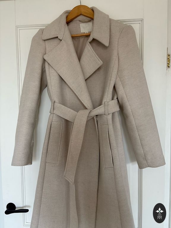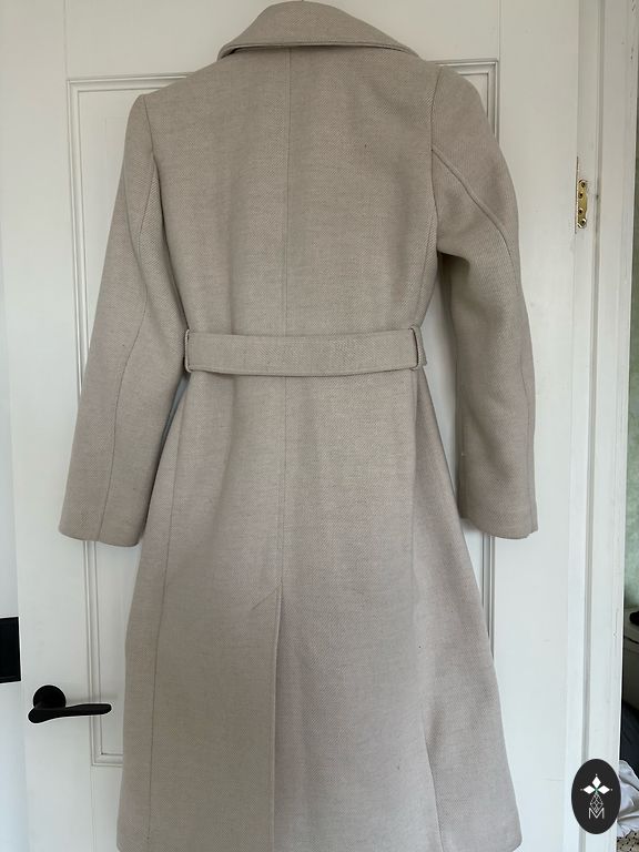 Stilīga bēša jaka ar rāvējslēdzēju un dekoratīvām kabatām ar pogām. Moderns, piegriezums līdz gurniem, kas labi izceļ vidukli. Patīkams, mīksts materiāls. Pirku L izmēru, lai ir forši oversize