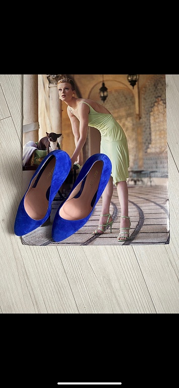 Zamšādas augstpapēžu kurpes zilāk krāsā.