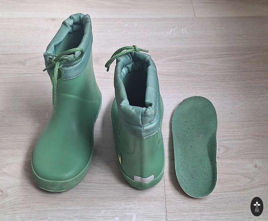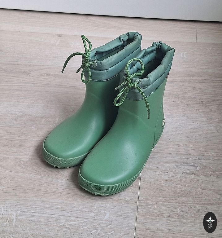 Ir skrāpējumi uz purngala, nav savelkamie striķīšī un auduma daļa sasmerējusies. Bet kopumā savu funkciju pilda ir ērti un silti zābaciņi. Pa mājām vēl var novalkāt. 15 cm iekšpediņa