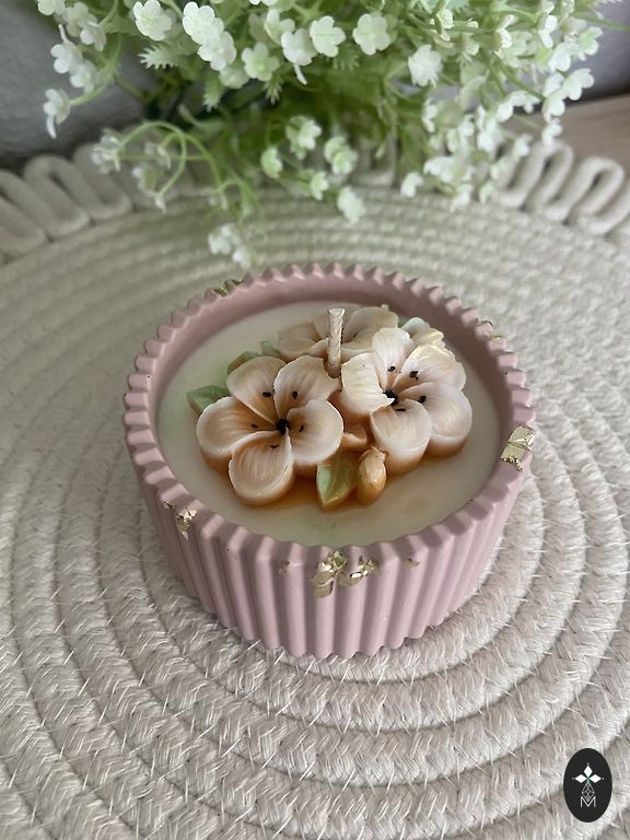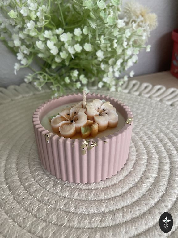 Lengvas gėlių aromatas, sojų vaško žvakės ir akrilo gipso indelis. Rankų darbas. Siunčiu.