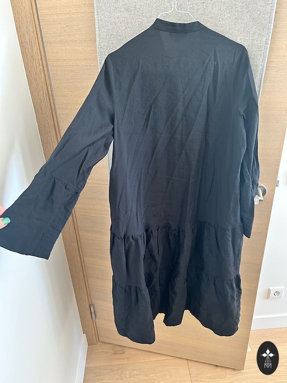 Looking for a light, airy, and easy-to-care-for dress? This is a great choice! Its bright flowers on a dark background add elegance, while the comfortable cut allows you to feel free all day long. Perfect for everyday wear as well as for smaller events.