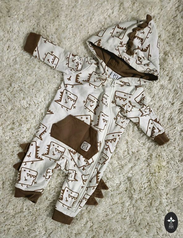 Imikute kombinesoon kuni 74 cm üleskeeratavate käistega. Seestpoolt fliis. Natuke rohkem kulunud tagumikukoht (autos istudes), kuid üldiselt kvaliteet pole kadunud, lisatud pildil on näha.