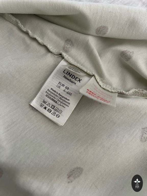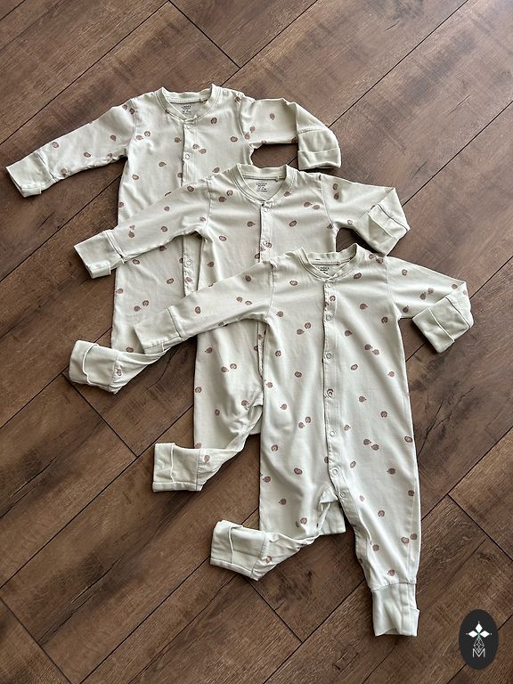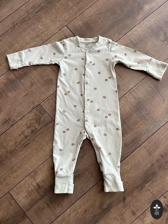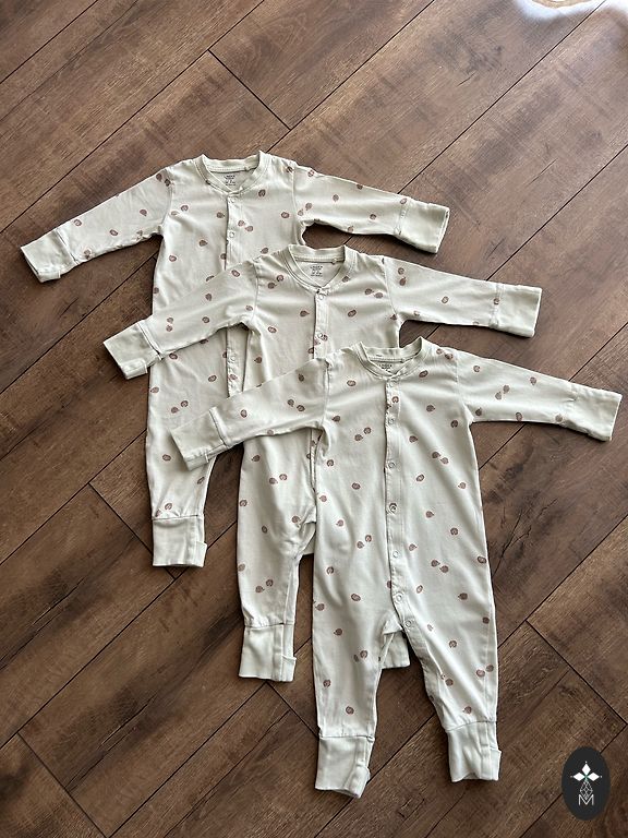 Lindex medvilninė pižama su tinginiais. 98./104 dydis. Naudota, bet vis dar geros būklės. Nėra skylių ar dėmių. Šiek tiek išsitampęs kaklas (matomas paskutinėje nuotraukoje), todėl nerašau, kad pižama yra labai geros būklės, o tiesiog geros.