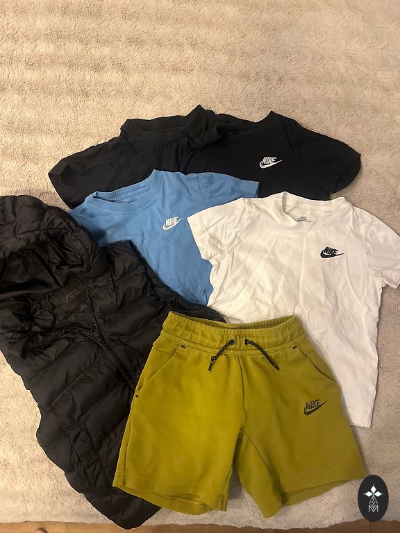 Prie drabužių paskutinėje nuotraukoje - šortai, trumpų rankovių Nike, 2 ilgų rankovių marškinėliai, tarp jų Helly Hansen merino termo.