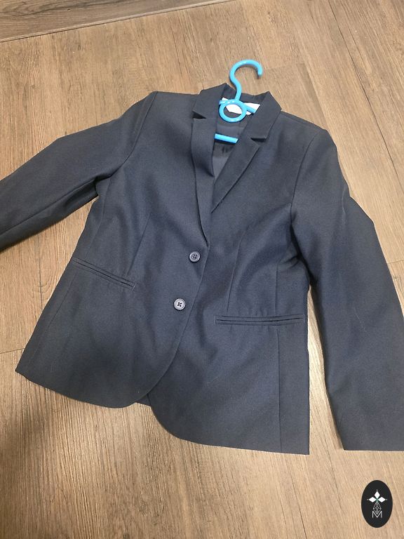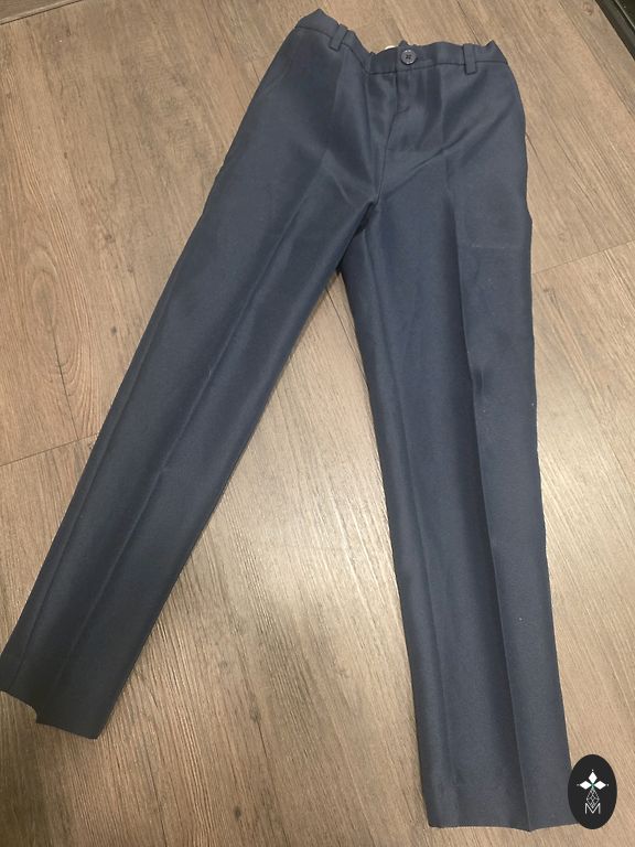 Костюм подойдет для стройного, худощавого мальчика на выпускной в детском саду или для начала школьных занятий. Указанный размер рассчитан на 8 лет, но больше подойдет для 6/7 летнего. Брюки со складками, регулируемый пояс с резинкой и пуговицей. Длина брюк от промежности 56 см, длина рукава от плеча 48 см. Обхват талии жакета 70 см.